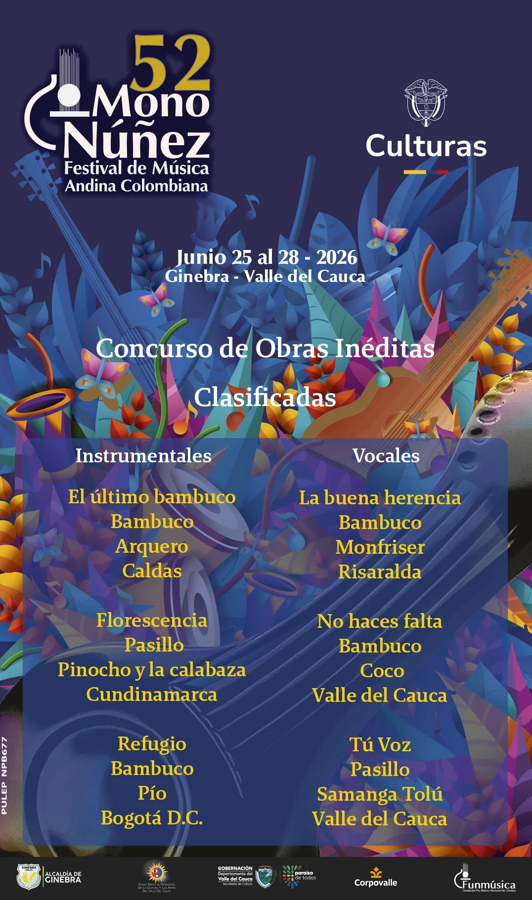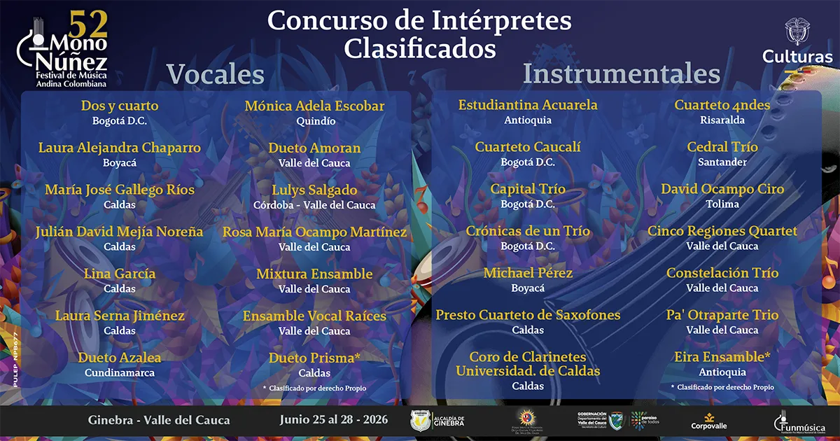 Del 25 al 28 de junio de 2026, Ginebra (Valle del Cauca) será el corazón de la música andina colombiana con el Festival Mono Núñez.