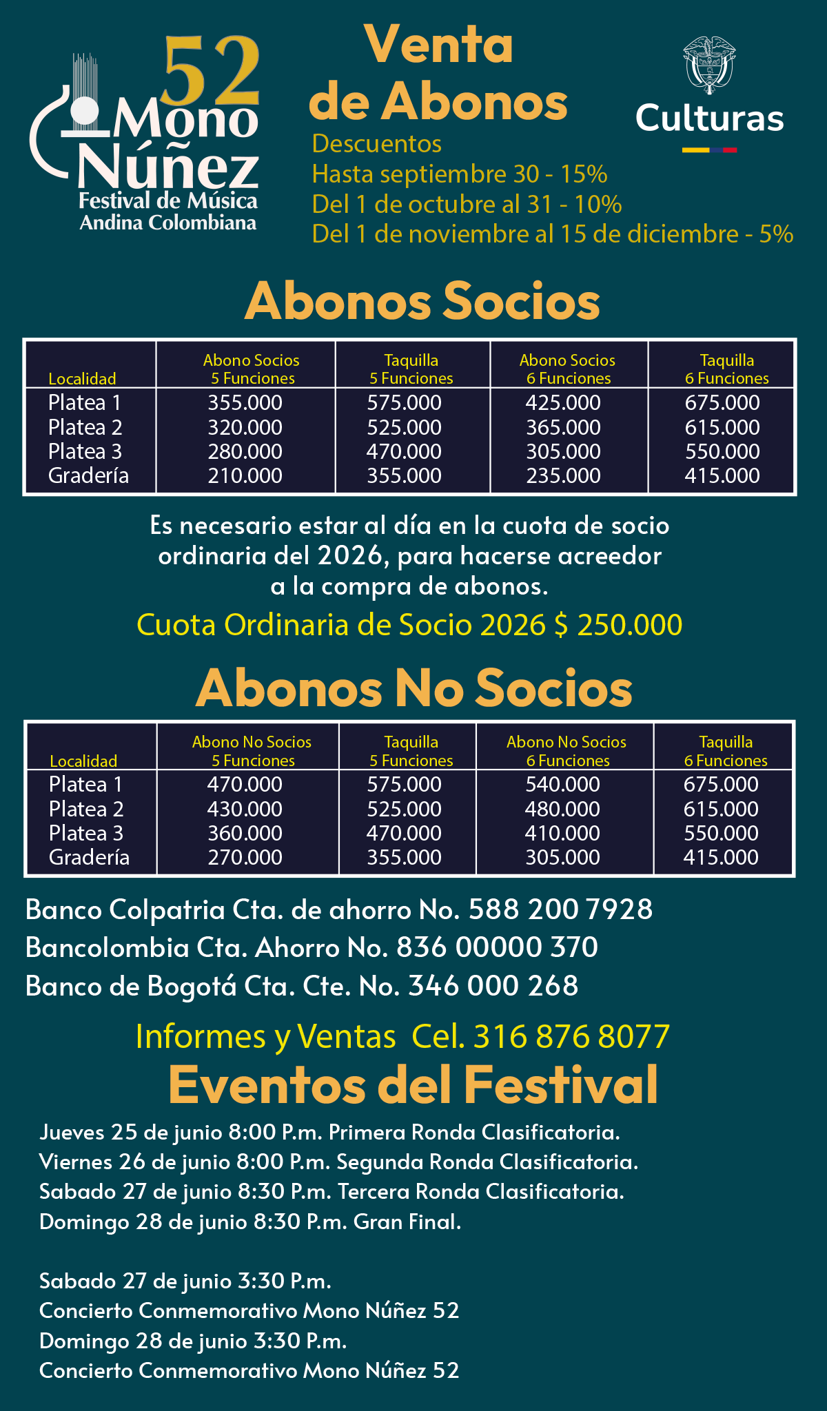El 9 de abril, Cali acogerá el lanzamiento del 51 Festival Mono Núñez en el Teatro Municipal Enrique Buenaventura. Con presentaciones de ganadores anteriores, el