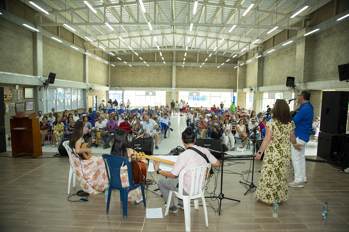 El compositor Eugenio Arellano Becerra comparte con el público su obra inédita en un Concierto Dialogado, explicando el origen de su Bambuco, «Hay que sacar al diablo» y los paisajes que lo inspiraron. La interacción con los asistentes convierte la presentación en una verdadera tertulia musical.